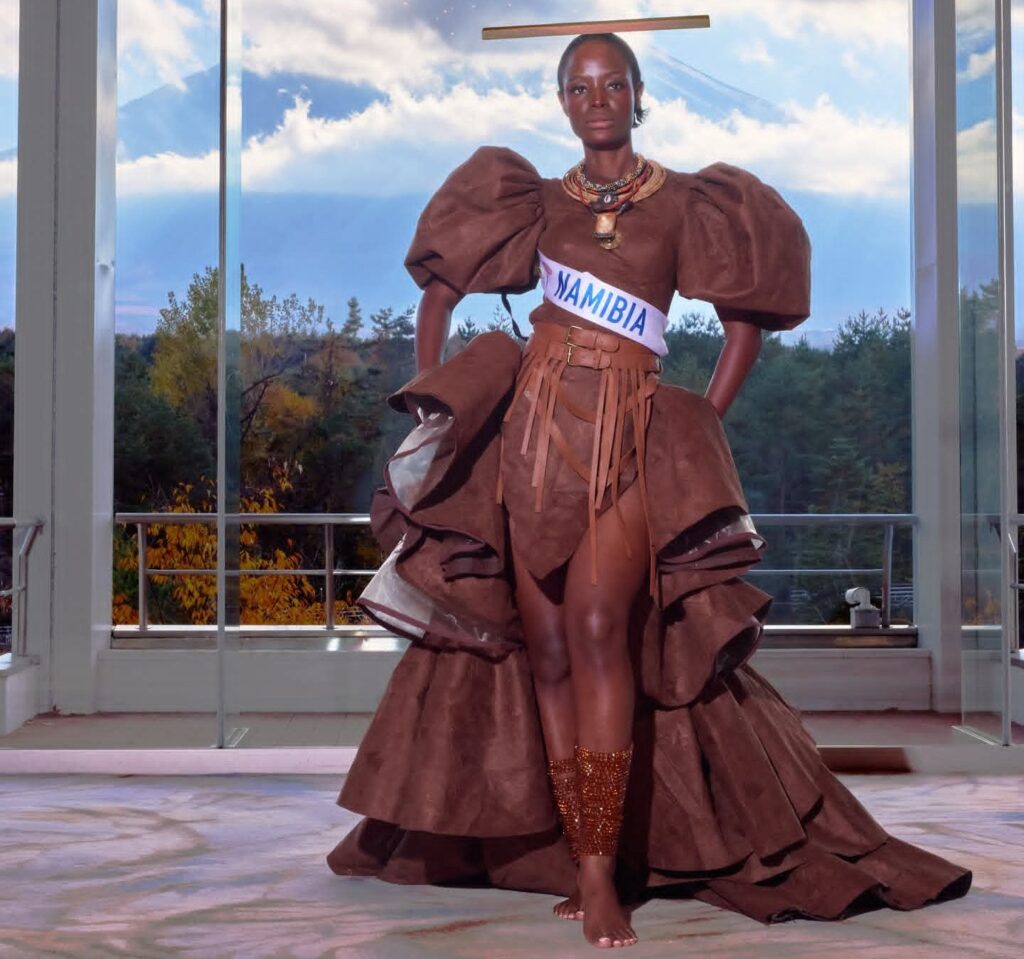 Designed as a modern tribute to two of Namibia’s iconic cultures, the OvaHerero and OvaHimba, the costume tells a story of strength, resilience and cultural evolution. It blends distinct elements from both traditions while projecting a vision of continuity into the future.